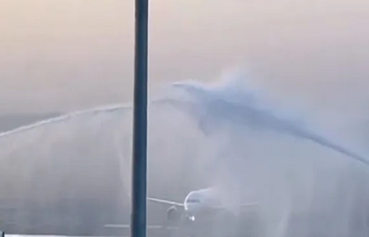 ये फ्लाइट इंडिगो की थी, जिसका एयरपोर्ट पर वॉटर कैनन से स्वागत किया गया।