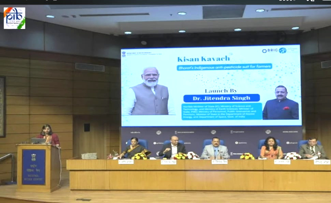 नई दिल्ली (हि.स.)। केंद्रीय विज्ञान एवं प्रौद्योगिकी राज्य मंत्री डॉ. जितेंद्र सिंह ने मंगलवार को भारत का स्वदेशी कीटनाशक रोधी सूट ‘किसान कवच’ लॉन्च किया। किसान कवच किसानों को कीटनाशकों से होने वाले स्वास्थ्य खतरों से बचाएगा। इसकी कीमत चार हजार रुपये है और इसे 150 बार धोया जा सकता है। यह कवच लगभग दो साल तक चलेगा।यह कवच खास कपड़े और तकनी से बना है सूट है।