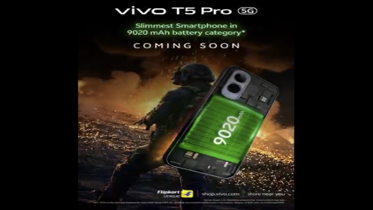 Vivo ने अपनी T-सीरीज को आगे बढ़ाते हुए vivo T5 Pro 5G के इंडिया लॉन्च की आधिकारिक पुष्टि कर दी है। हाल ही में लॉन्च हुए vivo T5x 5G के बाद अब कंपनी इसका ‘प्रो’ वर्जन पेश करने जा रही है। Flipkart पर फोन का प्रोडक्ट पेज लाइव हो चुका है, जिससे साफ हो गया है कि यह स्मार्टफोन जल्द ही भारतीय बाजार में एंट्री लेने वाला है। सबसे खास बात यह है कि यह फोन 9020mAh की पावरफुल बैटरी के साथ आएगा, जो इसे अपने सेगमेंट में बेहद खास बनाती है।