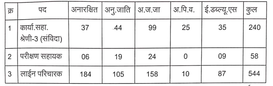 मानव संसाधन एवं प्रशासन विभाग के आदेश के अनुसार पूर्व क्षेत्र विद्युत वितरण कंपनी में कार्यालय सहायक श्रेणी-3 (संविदा) के कुल 240 पद, परीक्षण सहायकों के 58 पद और लाईन परिचरकों के 544 पद रिक्त हैं।