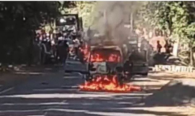 सवारियों से भरी मारुति वैन में लगी भीषण आग, लोगों ने कूदकर बचाई अपनी जान