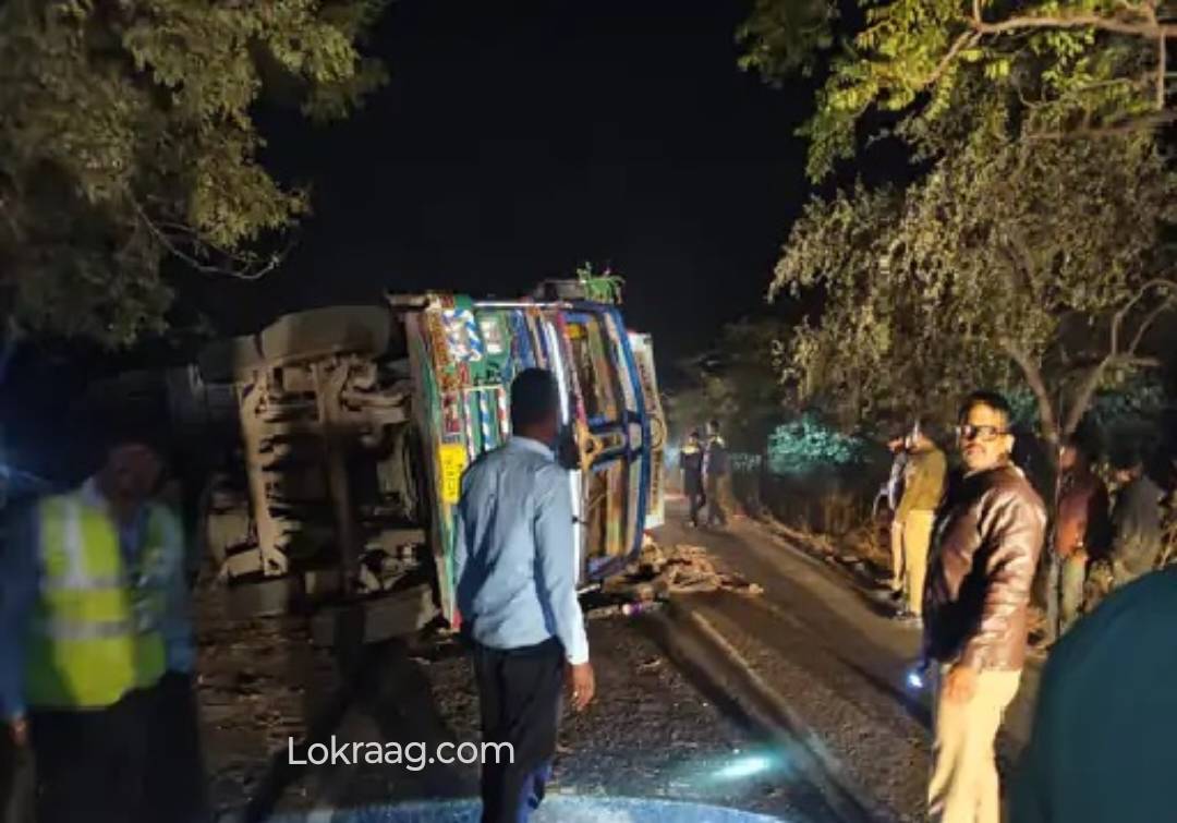 रतलाम. एमपी के रतलाम-झाबुआ रोड पर सोमवार 12 जनवरी की देर रात टाइल्स लोड एक ट्रक चढ़ाई चढ़ते समय रिवर्स हुआ और पीछे आ रहे लोडिंग वाहन पर पलट गया। ट्रक के नीचे दबने से लोडिंग वाहन में सवार तीनों लोगों की मौके पर ही जान चली गई। शव बुरी तरह चिपक गए थे, जिन्हें निकालने के लिए पुलिस को करीब ढाई घंटे मशक्कत करनी पड़ी। मृतकों में दो रतलाम और एक झाबुआ का रहने वाला था।