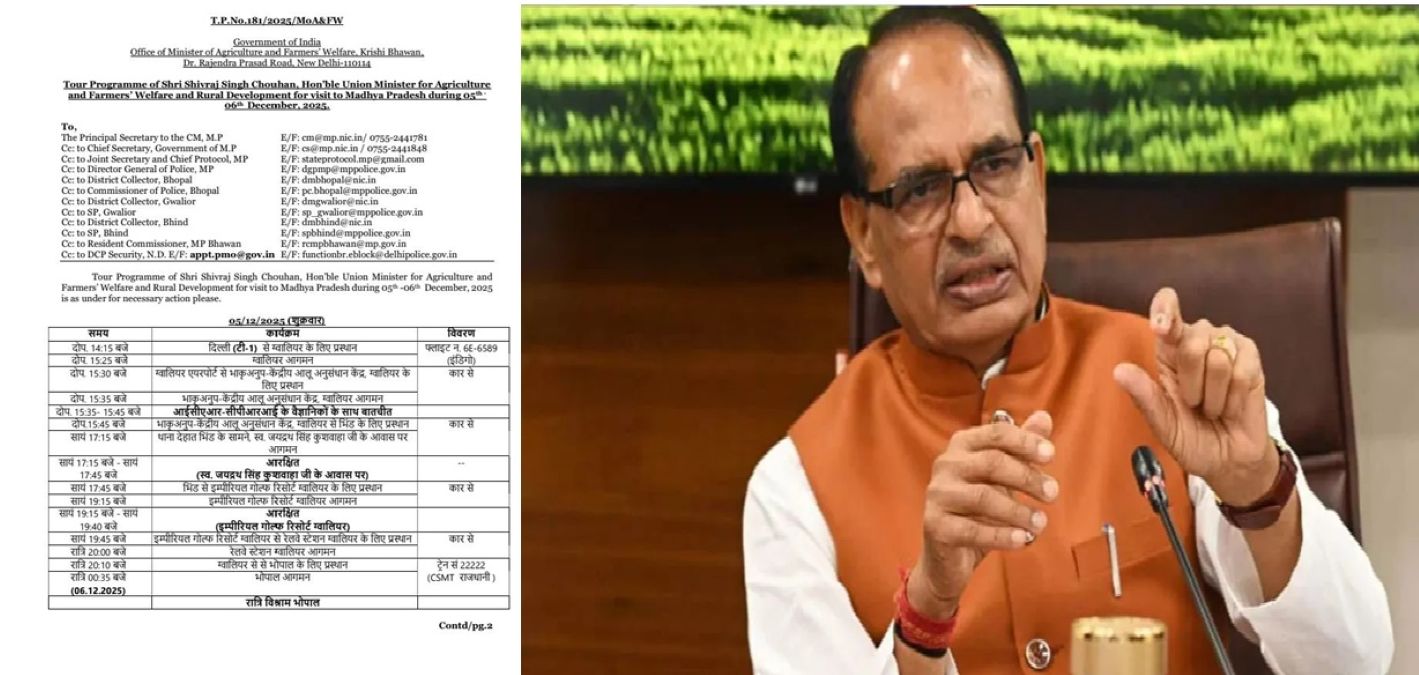 इस दौरे की समाप्ति के बाद शिवराज सिंह चौहान रात आठ बजे ट्रेन से भोपाल के लिए रवाना होंगे। उनका यह पूरा दौरा क्षेत्र में कृषि से जुड़े अनुसंधान कार्यों को गति देने और स्थानीय स्तर पर किसानों की आवश्यकताओं को समझने की दृष्टि से अत्यंत महत्वपूर्ण माना जा रहा है।