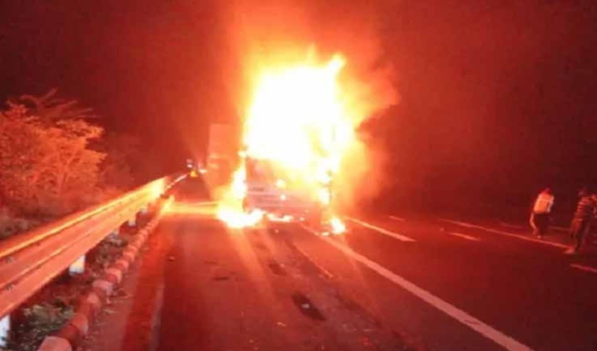 अलवर. अलवर में दिल्ली-मुंबई एक्सप्रेस-वे पर मंगलवार देर रात एक पिकअप में आग लग गई। हादसे में 3 लोगों की बुरी तरह जलने से मौके पर ही मौत हो गई। एक गंभीर झुलसे व्यक्ति को जयपुर रेफर किया गया है। मृतकों में दो लोग एमपी के सागर के रहने वाले थे।