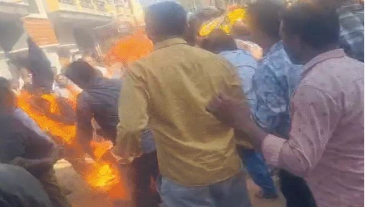 इसी बीच दंपती ने तहसीलदार के सामने ही अपने ऊपर पेट्रोल डालकर आग लगा ली। मौके पर मौजूद लोगों ने तुरंत आग बुझाना शुरू किया। आग बुझने तक पति-पत्नी गंभीर रूप से झुलस चुके थे। घटना के बाद क्षेत्र में भारी आक्रोश फैल गया। गुस्साए लोगों ने सतवास बस स्टैंड पर पुलिस थाने के सामने चक्काजाम कर दिया और तहसीलदार के खिलाफ नारेबाजी की।